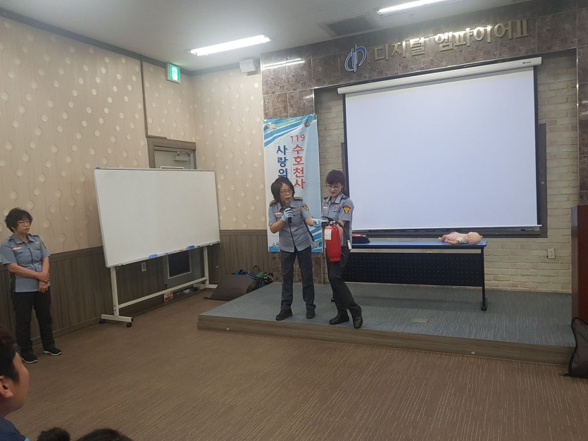 권선의용소방대 지원을 통한 소방안전교육 진행 페이지 정보 작성자 엘림보호작업장 (59.♡.239.160) 댓글 0건 조회 1,684회 작성일 19-05-27 12:44 본문 자원봉사단체인 권선의용소방대에서 소방안전교육을 진행하였으며심폐소생술과 하임리히법, 소방대피훈련을 진행하였습니다.이용장애인들이 직접 심폐소생술을 모의훈련도 진행하는 등 알찬 시간을 보냈습니다 목록 이전글권선의용소방대와 함께하는 나들이 19.06.14 다음글경기도 의료원 2019년 무료이동 진료 1차 진행 19.05.22 댓글목록 댓글목록 등록된 댓글이 없습니다.